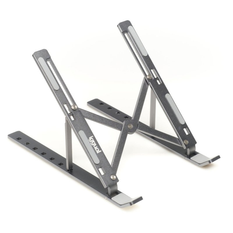 Descubre el pequeño gran soporte plegable de iggual para portátiles y tablets. Pliégalo y llévalo contigo a todas partes, en la bolsa de viaje que incluye. ¡Fácil, cómodo y rápido!