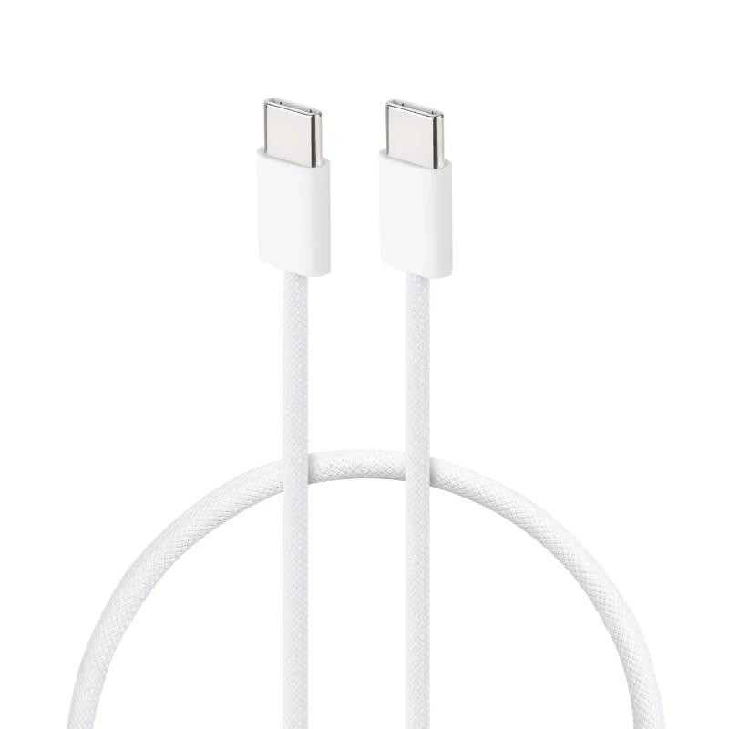 | Características | - Conector tipo USB-C macho en ambos extremos - Apto para iPhone 15, con interfaz USB 2.0 (480 Mbps) - 3 amperios 60W de carga - Compatible con carga rápida PD, PPS y QC: 9V/2A=18W 9V/2.22A=20W 15V/2A=30W 15V/2.4A=36W 20V/2.25A=45W 20V/3A=60W - Cable mallado por material de algodón - Longitud: 1 metro - Color: Blanco - Normativas: RoHS - Test de funcionamiento: 100% testado |
