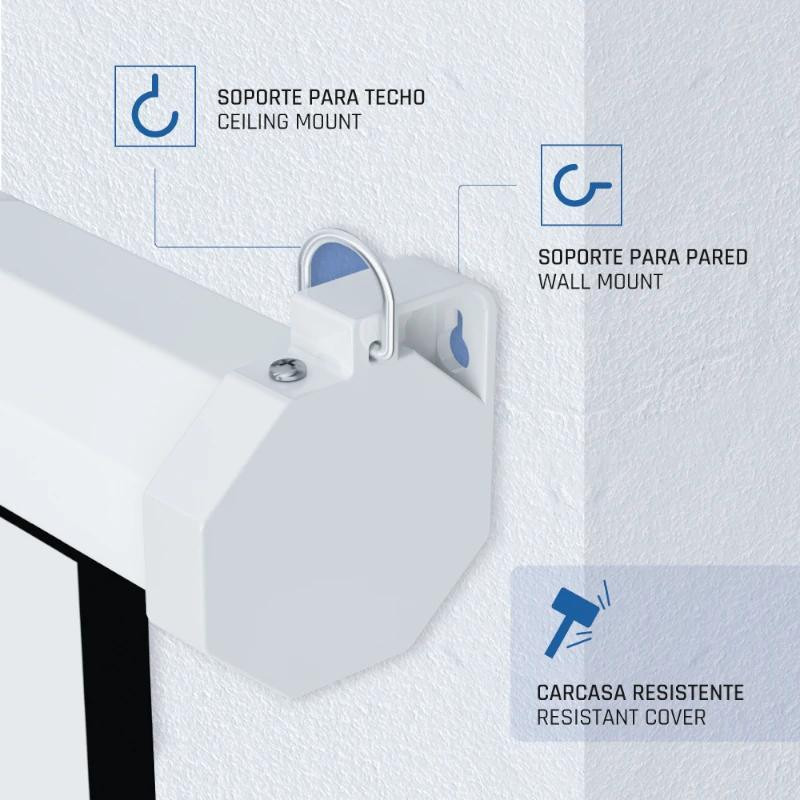 Con una amplia oferta que se adapta a todos los gustos y necesidades, iggual cuenta con pantallas manuales que podrás colocar en el techo o en la pared, para disfrutar de la mejor perspectiva. Además, ofrece una opción con trípode muy cómoda de transportar y dispone de pantallas eléctricas panorámicas y cuadradas, con control de pared incorporado.